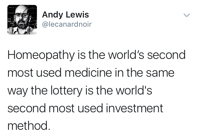 L’homéopathie est la seconde médecine la plus utilisée, de la même manière que la loterie est la seconde méthode d’investissement la plus utilisée au monde.