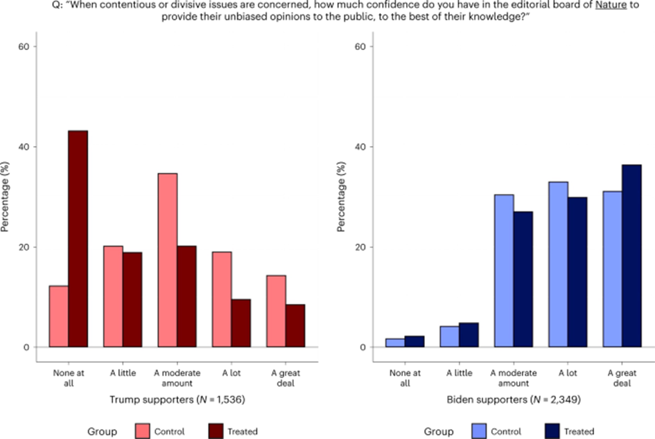 Le fait que Nature ait promu les actions de Biden a provoqué une forte réduction de la confiance déclarée en Nature parmi les partisans de Trump.