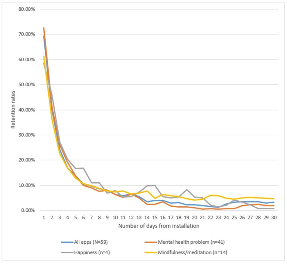 Baumel, A., Muench, F., Edan, S., & Kane, J. M. (2019). Objective User Engagement With Mental Health Apps: Systematic Search and Panel-Based Usage Analysis. Journal of Medical Internet Research, 21(9), e14567. https://doi.org/10.2196/14567