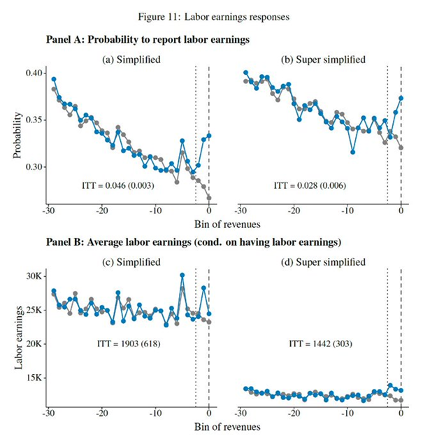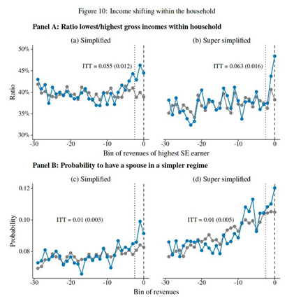 La raison ? Ce n’est pas seulement pour plus de simplicité : la facilité de l'évasion fiscale joue un rôle important. Il y a de fortes augmentations de comportements pouvant provenir de fausses déclarations et de l'évasion fiscale juste en dessous des seuils d'éligibilité.