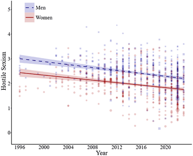 Source : Hammond, M. D., Singh, N., & Karl, J. A. (2025). The global decline in sexism: A multilevel meta-analytic review of trends in countries’ hostile sexism, benevolent sexism, and gender inequality over time.Psychological Bulletin, 151(8), 941–985. https://doi.org/10.1037/bul0000485