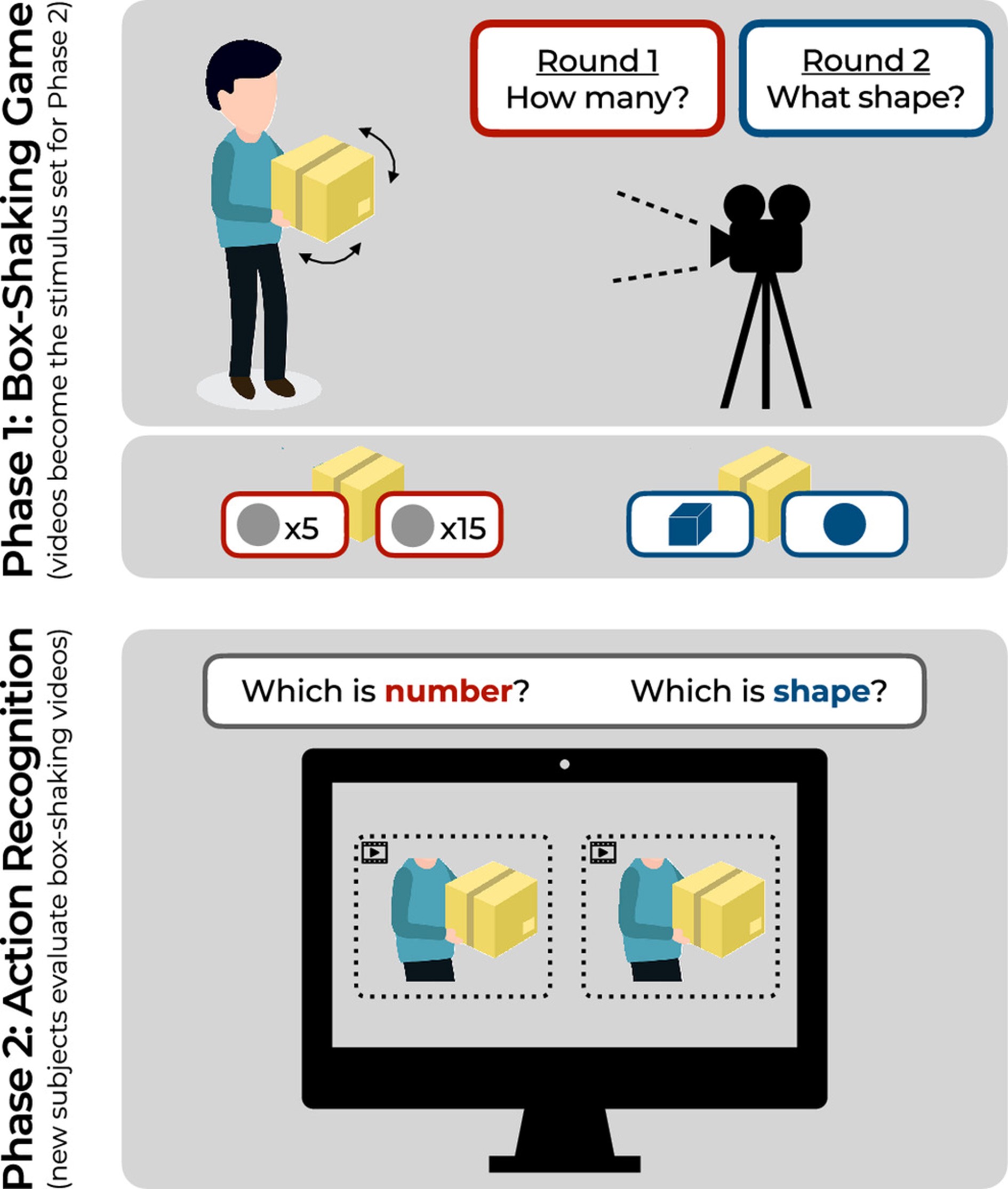 Ainsi, des chercheurs ont demandé à des participants de deviner soit le nombre (5 à 15) soit la forme (carré ou rond) des objets dans une boite à carton fermée, tout en les filmant.