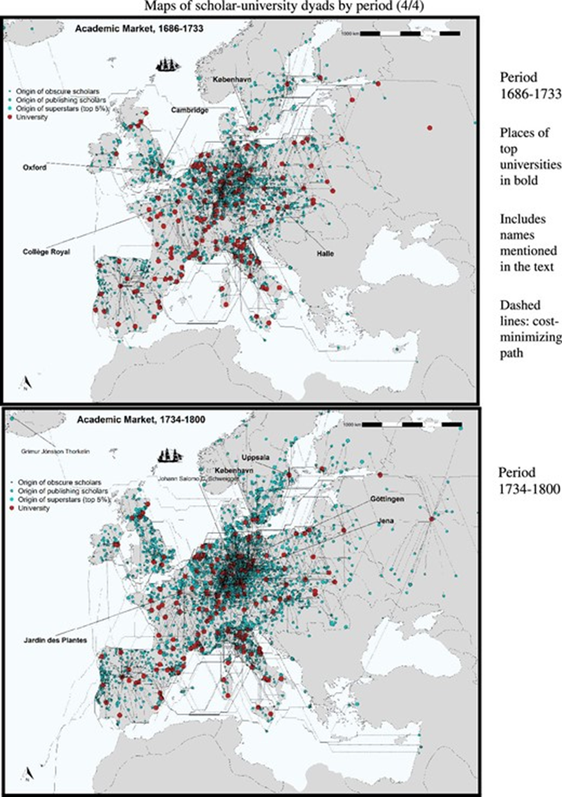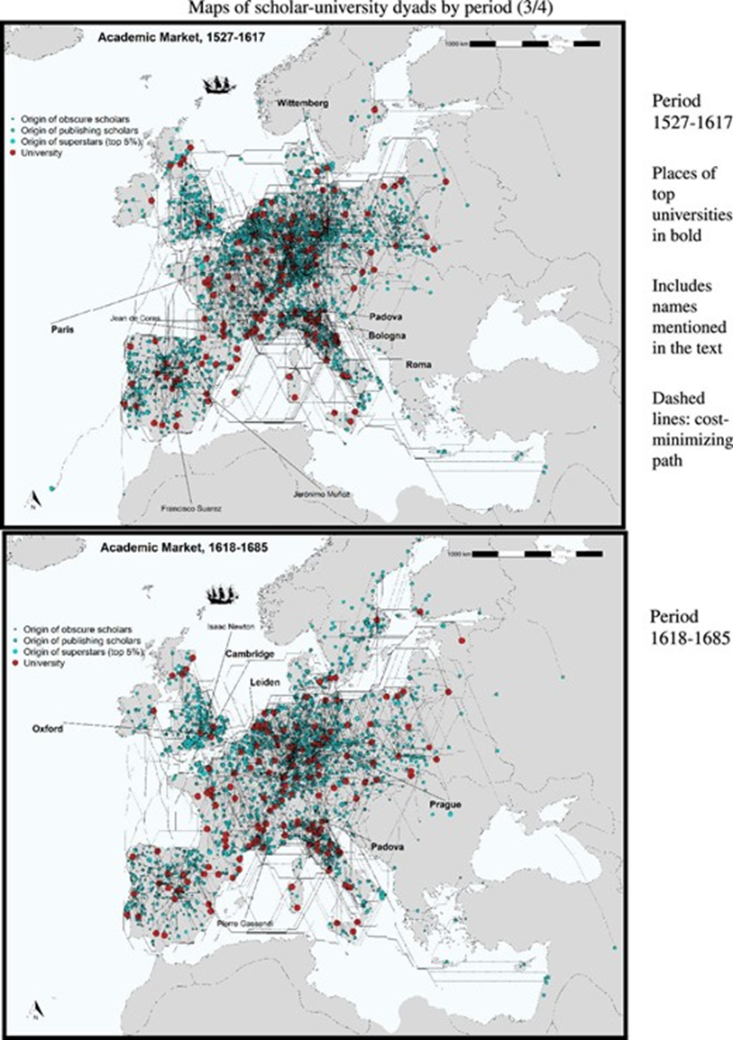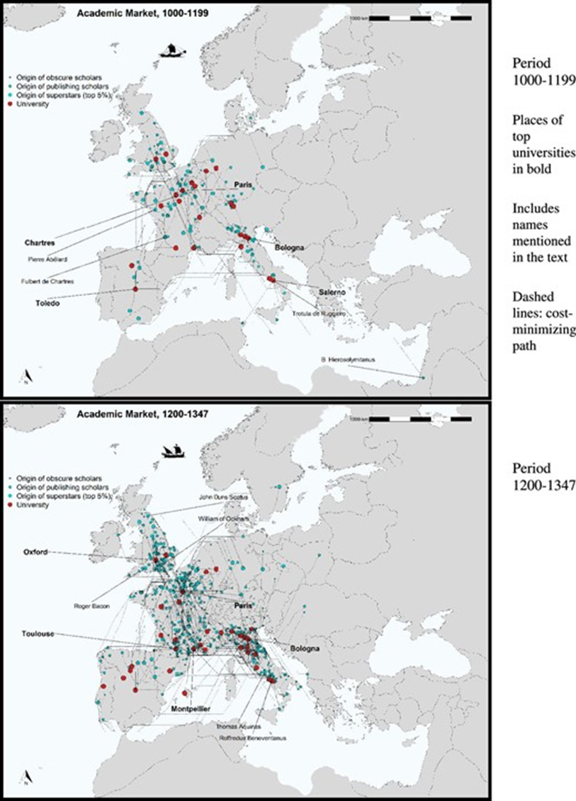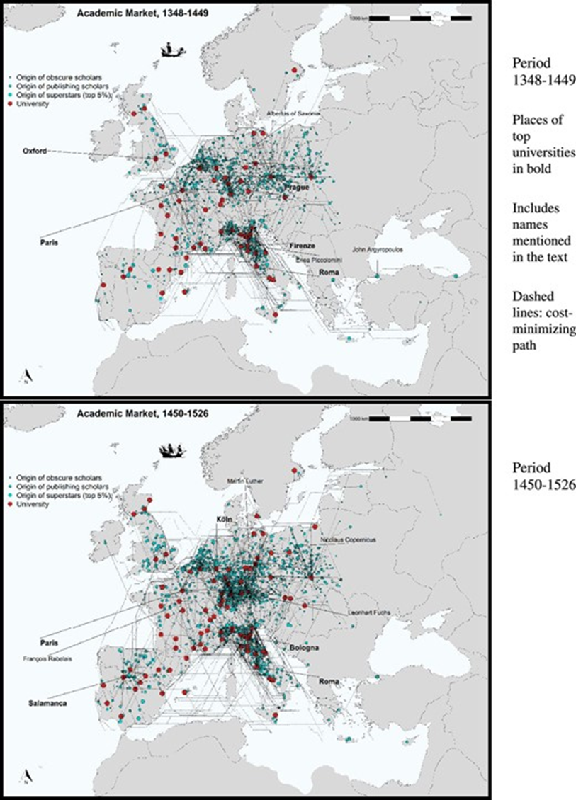 Des chercheurs ont collecté des données des chercheurs qui existaient entre l’an 1000 et 1800 dans le milieu universitaire afin de dresser le portrait de la recherche en Europe.